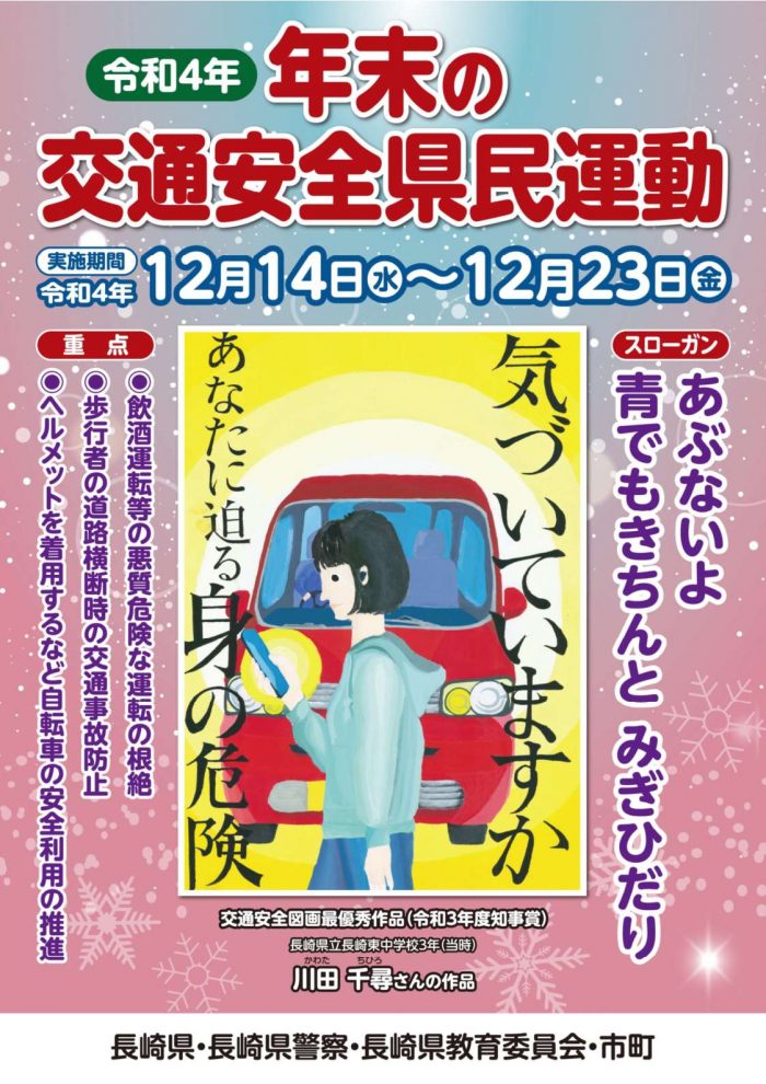 年末の交通安全県民運動が12月14日(水)~12月23日(金)の期間に実施されます。