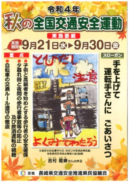 明日9/21(水)から9/30(金)は秋の全国交通安全運動となっております。