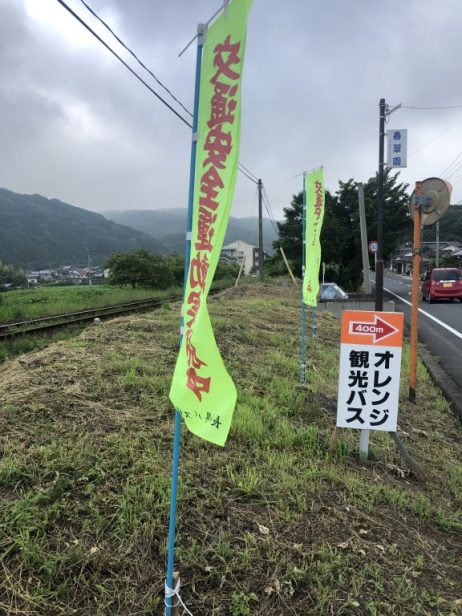 当社の入り口の道路付近に旗を設置しました