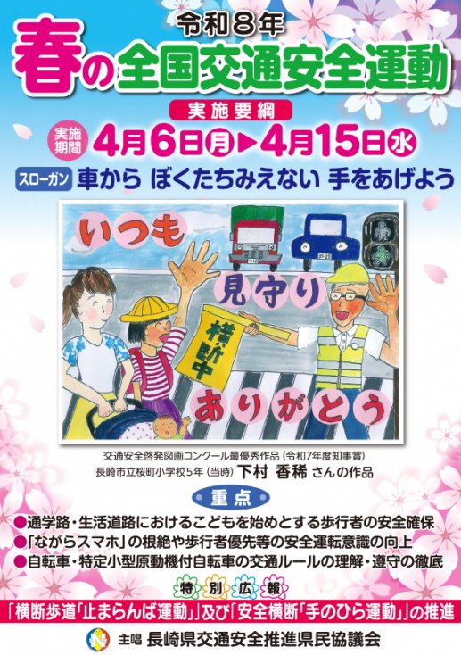 令和8年4月6日(月)~4月15日(水)は『春の全国交通安全運動』の実施期間となっています。
