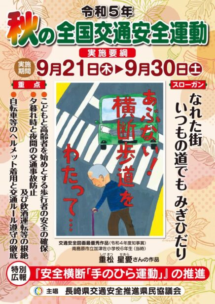 安全への取り組み9/21(木)~9/30(土)【秋の全国交通安全運動】の実施期間となります。