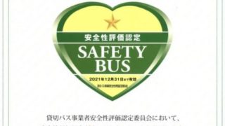この度、貸切バス事業者安全性評価認定委員会において、安全性評価認定をいただきましたこの制度は輸送において安全性の確保のための取り組みを適切に行っているかを審査する制度になっております2年後の更新時には☆2つを目標に頑張っていきたいと思います