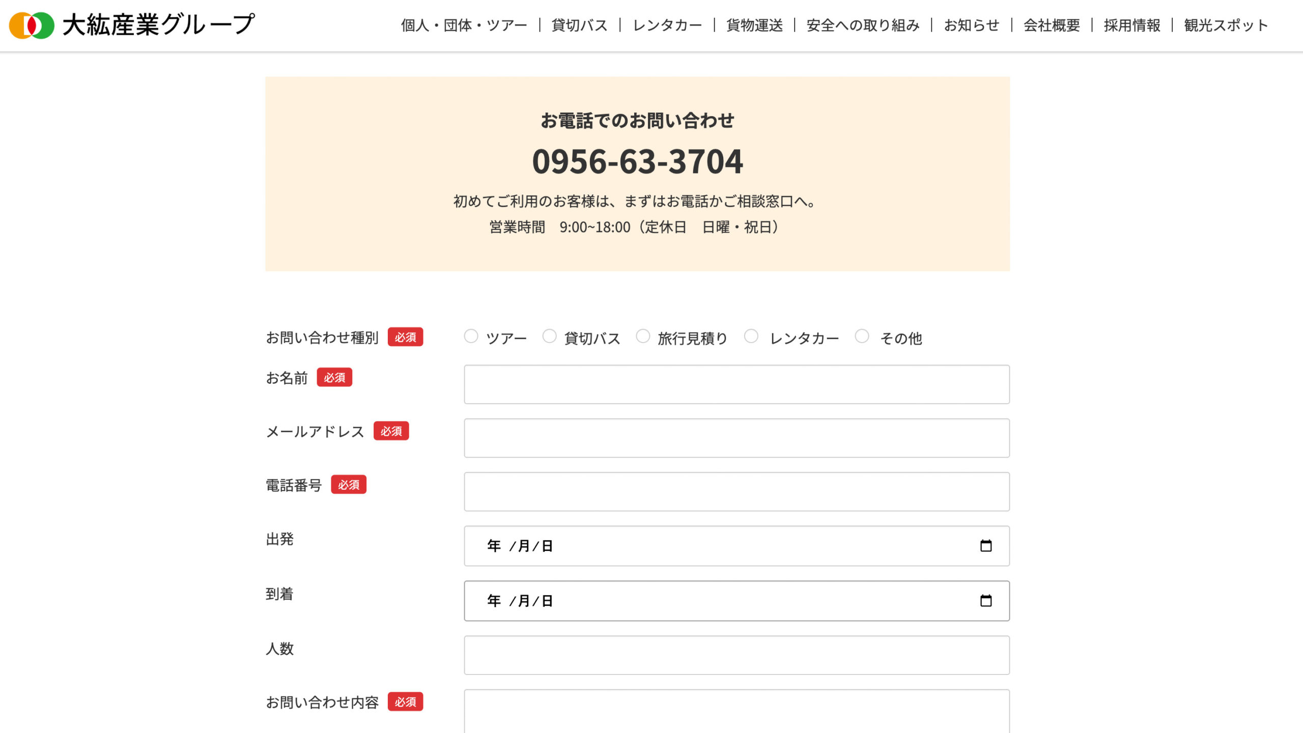 お客様のお名前、住所、電話番号、利用日時と目的地、利用人数と宿泊数などを、お電話か下記フォームにてお知らせください。初めてご利用のお客様はお電話にてお問い合わせください。フォームでお問い合わせのお客様は折り返しご連絡致します。
